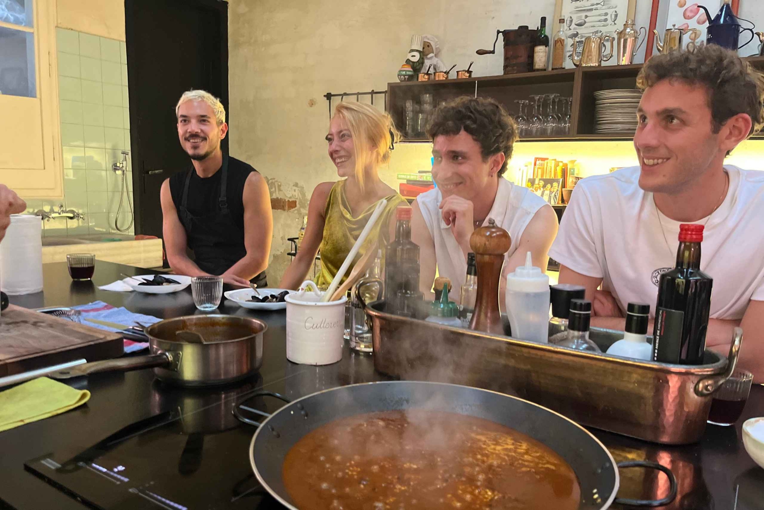 Nimm an einem zweistündigen Paella-Kochkurs in einer schönen offenen Küche im charmanten Stadtteil Grà cia in Barcelona teil. Unter der Anleitung eines leidenschaftlichen katalanischen Kochs lernst du, wie man eine authentische, schmackhafte Paella und die besten mediterranen Tapas wie Muscheln, Muscheln Marinera, Tintenfisch und Pan con Tomate zubereitet. Während der Koch dir das Kochen beibringt, kannst du dich an einer offenen Bar mit erfrischender SangrÃa bedienen und die entspannte Atmosphäre unseres stilvollen 150 m² großen Veranstaltungsortes mit bequemen Sofas, Esstischen und toller Musik genießen. Egal, ob du ein Feinschmecker, Reisender oder neugieriger Koch bist, dieser praktische Kurs ist die perfekte Mischung aus Kultur, Geschmack und Spaß. Komm mit Hunger und geh satt nach Hause (und mit ein paar neuen Küchertricks im Gepäck). **Wichtiger Hinweis: Dies ist ein Paella-Kurs mit Meeresfrüchten. Wenn du Vegetarier, Veganer oder Lebensmittelunverträglichkeiten hast, lass es uns bitte im Voraus wissen, damit wir den Kurs entsprechend anpassen können.**Includes
