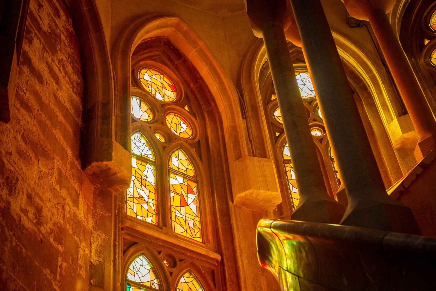 - Promenez-vous sous des piliers en forme d'arbres et émerveillez-vous devant la lumière kaléidoscopique des vitraux.