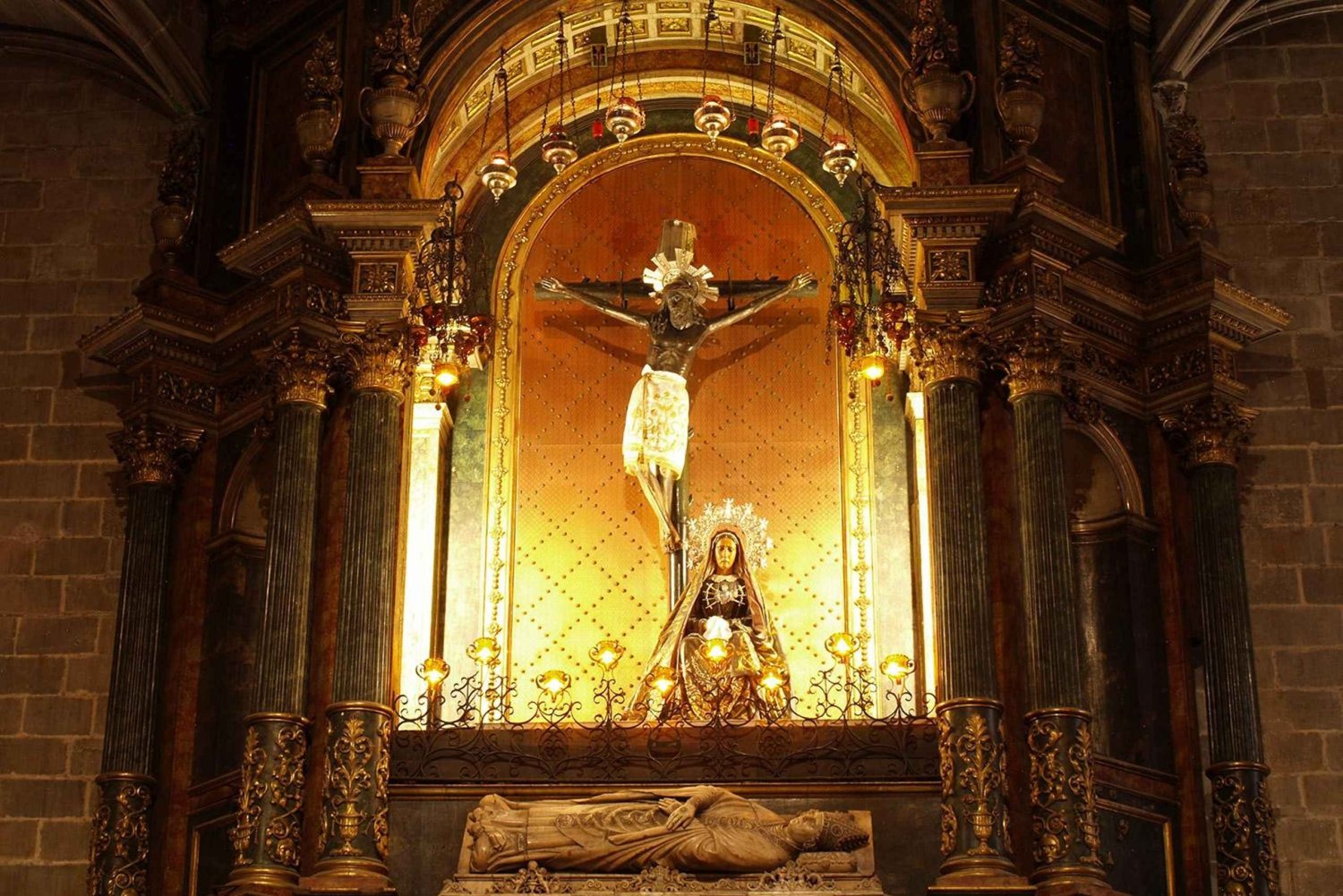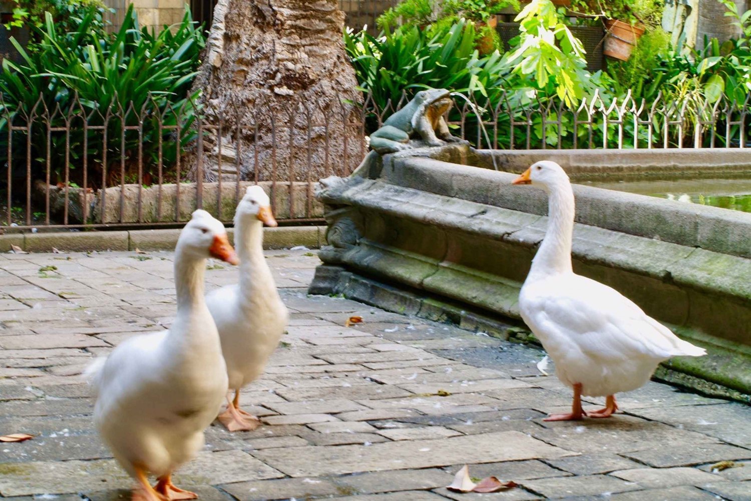 Oppdag juvelen i Barcelonas berømte gotiske kvarter med denne inngangsbilletten til katedralen i Barcelona. Lær om den historiske bakgrunnen til denne kirken som ble bygget på 1300- og 1400-tallet. Begynn med å gå gjennom ytterdørene til Pieta og Saint Eulalia for å gå inn i katedralens kloster. Deretter går du forbi den romanske innerdøren, laget av hvit marmor og arkivvolter dekorert med geometriske mønstre og et gotisk fronton. Vandre gjennom klosteret og dets fire gallerier med ogive buer atskilt av søyler. Se på relieffene som er skulpturert inn i søylene til klosterbuene, og viser scener fra Det gamle testamente. Lær om Det hellige kors og hjørnesteinene i hvelvet som viser scener fra Det nye testamente. Deretter kan du ta deg tid til å sjekke ut kapellene som er arrangert langs de tre galleriene, hver i utgangspunktet dedikert til skytshelgen for en institusjon eller et laug, og plassert under beskyttelse av en bestemt familie. Deretter observerer du klosterhagen med palmer, magnoliaer, et appelsintre og en fontene. Her finner den tradisjonelle «ou com balla» (dansende egg) sted hvert år for feiringen av Corpus Christi. Det er en stor dam i klosteret som er hjemsted for de 13 hvite gjessene i katedralen. Fortsett ved å ta heisen til hustakene, gjennom kapellet til de uskyldige hellige, ved siden av døren til San Ivo. Fra hustakene kan du se på de to klokketårnene, de to sidetoppene, cimborioen kronet av Det hellige kors, klosteret og en spektakulær panoramautsikt over Barcelona. Etter å ha nyter utsikten fra taket, besøk den historiske Chapter Hall, omgjort til et museumsrom. Dette ligger under galleriet til klosteret, ved siden av kapellet dedikert til Saint Lucia. Opprinnelig var det stedet for et suppekjøkken for de fattige. Når du er inne i Chapter Hall, kan du avslutte med å sjekke ut den flikete døpefonten fra 1000-tallet fra det tidligere romanske tempelet og terrakottaskulpturen til Saint Eulalia av Giuliano di Nofri, fra pedimentet over døren til Saint Eulalia.Includes