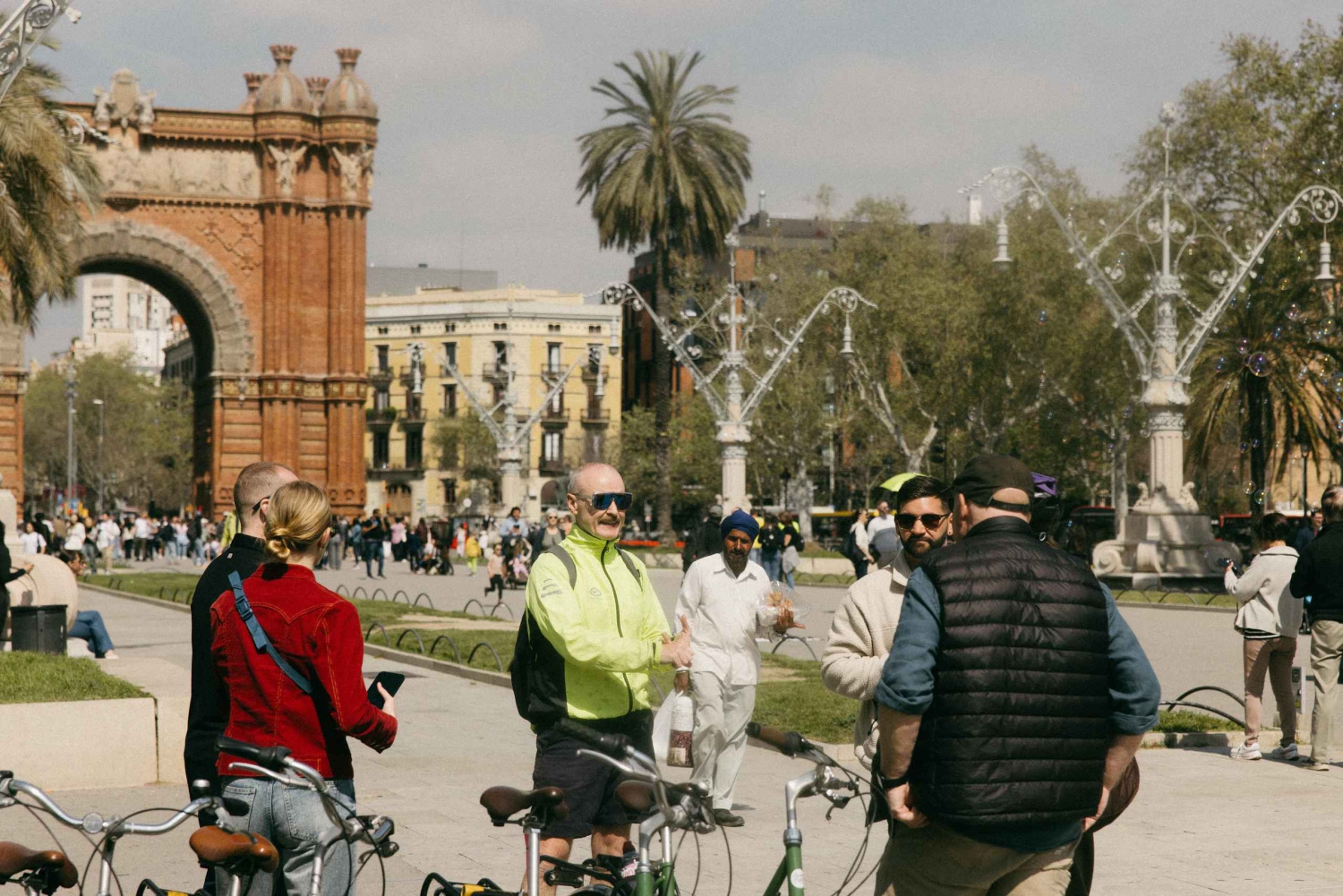 Экскурсия начинается у фонтана на площади Plaça Reial, где вас будет ждать гид. Затем садитесь на велосипед и отправляйтесь по переулкам Готического квартала к площади Placa del Rei. Оттуда экскурсия проходит мимо Барселонского собора к одному из величайших образцов архитектуры модернизма в городе — концертному залу Palau de la Música Catalana. Продолжайте движение оттуда, направляясь в парк Сьютаделья с остановкой по пути у Триумфальной арки. Насладившись прогулкой по садам и освежающим напитком, вы снова отправитесь в путь ко второй по посещаемости достопримечательности Европы — собору Святого Семейства. У вас будет время сделать фотографии и просто в целом полюбоваться последним шедевром Гауди. Затем вы спуститесь на пляж, чтобы понежиться в Средиземном море. Наконец, экскурсия возвращается в оживленный район Эль-Борн, где вы сделаете последнюю остановку в базилике Санта-Мария-дель-Мар, прежде чем вернуться к отправной точке вашего тура.Includes